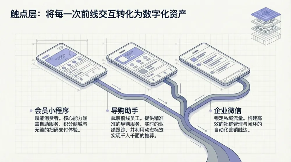 没有触点层,AI 就没有数据来源。触点越丰富,AI 的"感知"越敏锐。