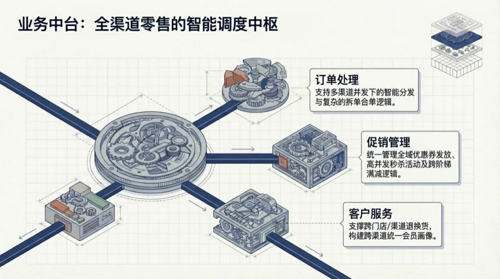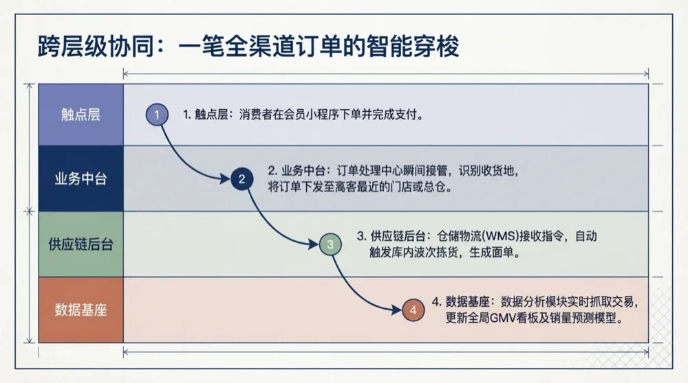 原文:触点层、业务中台、供应链后台、数据与基座