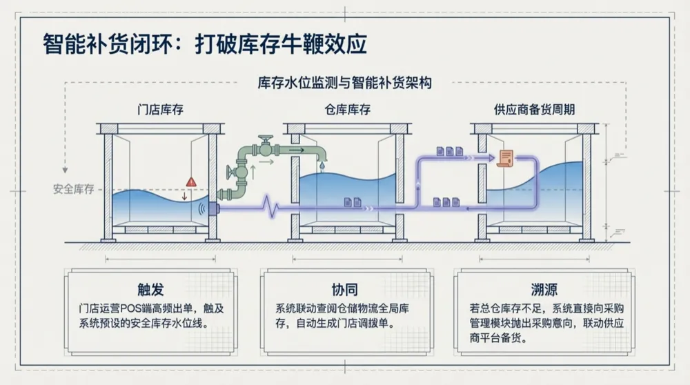 智能补货闭环,是 AI 决策 - 执行 - 反馈的完整循环。