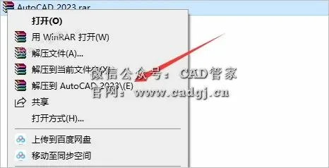 1.打开下载的CAD软件安装包,鼠标右击压缩包选择【解压到当前文件夹】。