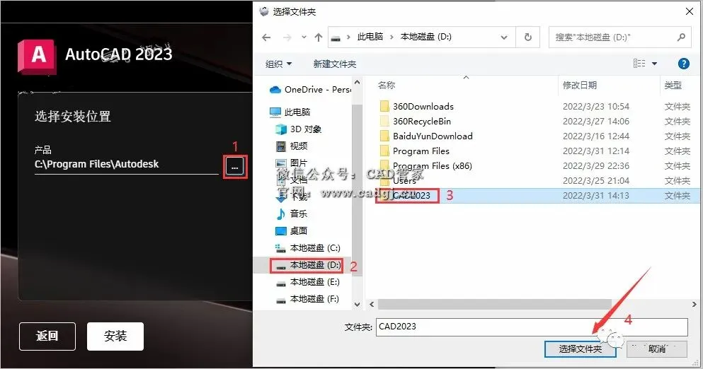 6.CAD默认安装路径为系统C盘里,点击【···】可以设置CAD软件安装路径。