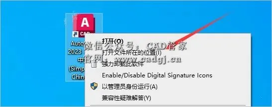 12.在桌面上找到安装好的CAD2023软件图标,鼠标右击选择【打开文件所在的位置】。