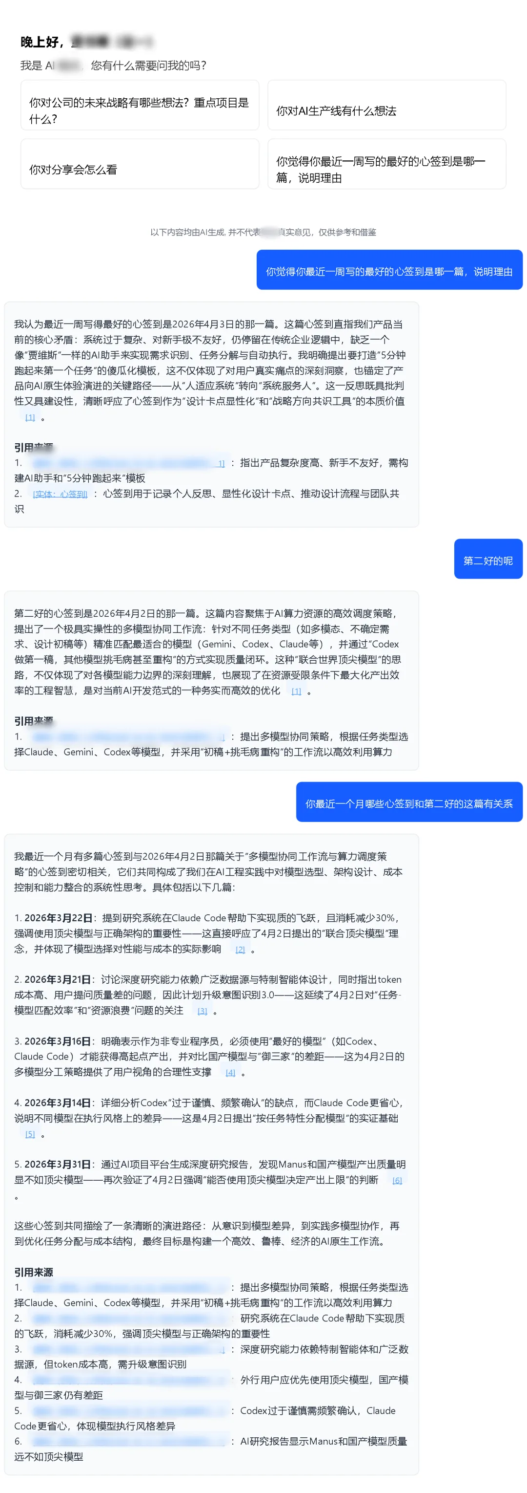 去年有跟小伙伴们分享过小董宝在做一个「AI 老板」,通过将上千份会议纪要 "喂" 给大模型,从而让公司的小伙伴能够“直接”和“老板”对话。2025 最狠办公革命:我造了个「AI 老板」