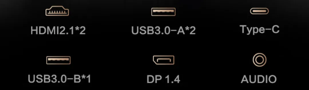 接口包含2*HDMI 2.1、1*DP 1.4、1*TYPE-C、2*USB 3.0-A、1*USB3.0-B、1*耳机口。海信27G7K Pro也是一款备受关注的热门MiniLED显示器,综合素质非常优秀。