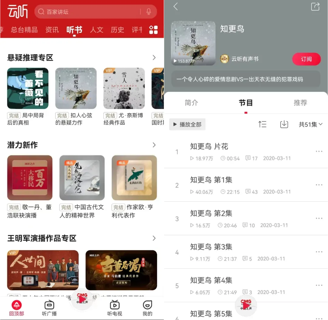 云听这款APP是小洁最喜欢用的听书软件,主要有三个点:界面美观、书源多、听说体验好。云听也凭借强大的书源收集能力,深受用户喜欢,云听内自带各种榜单、热门分类、热门小说资源等,都市、科幻、言情、玄幻等书源应有尽有,最主要是基本都免费~