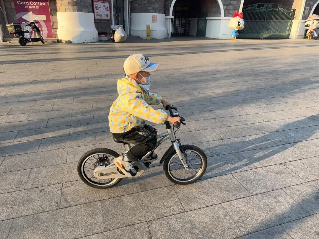 • 娃骑车时扬起的校服衣角