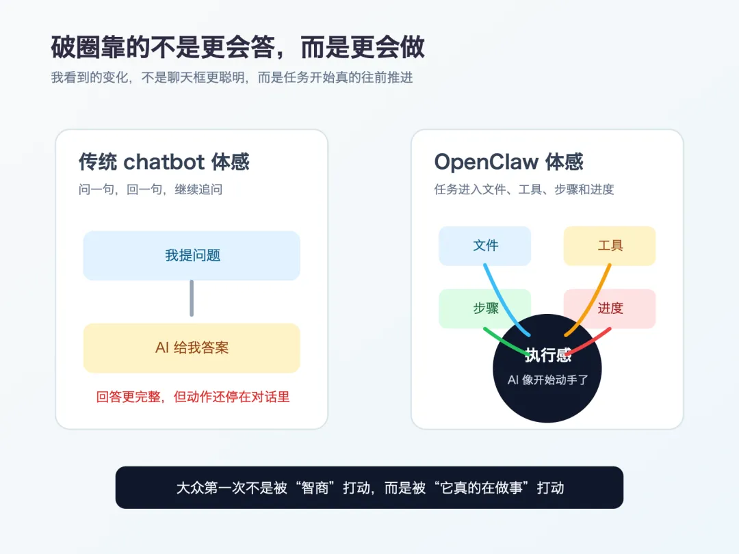 OpenClaw 真正破圈的,不是它更会答,而是它第一次让更多普通人直观感受到,AI 开始像一个会替你动手的人了。