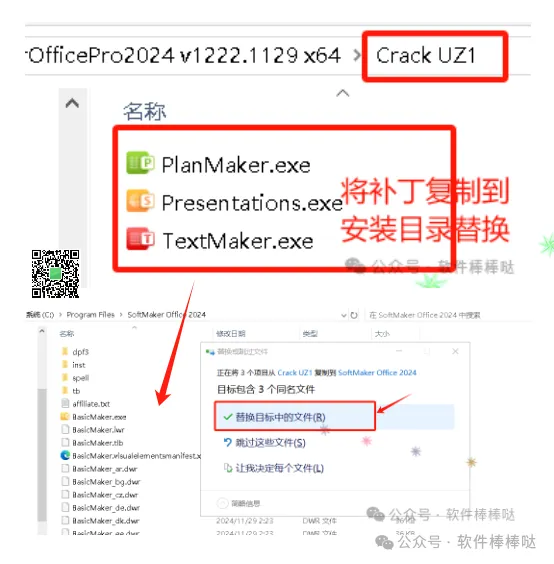 3、安装完成后先不要打开。要将破解补丁复制替换到软件安装目录下(安装目录默认为:C:\Program Files\SoftMaker Office 2024)
