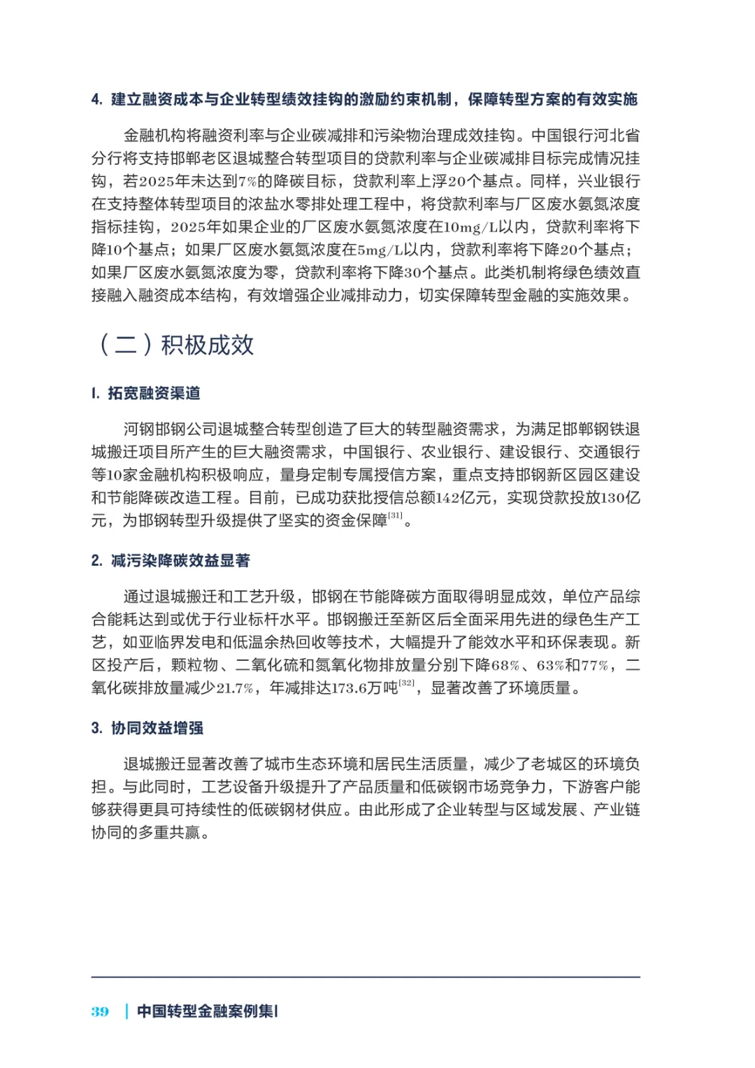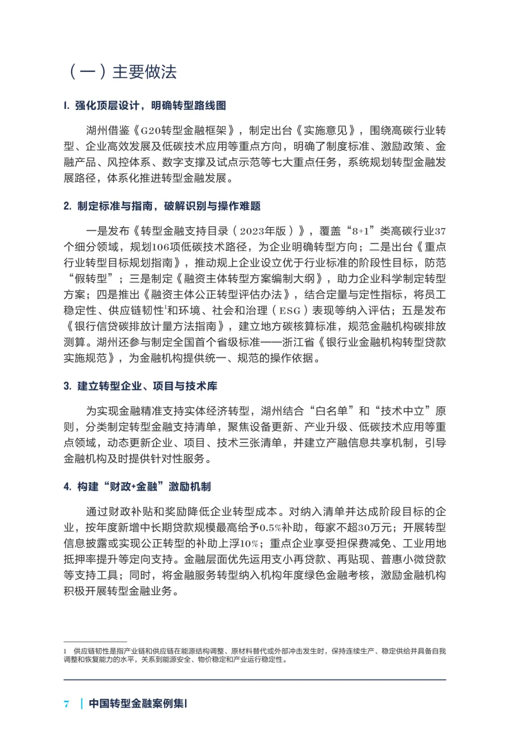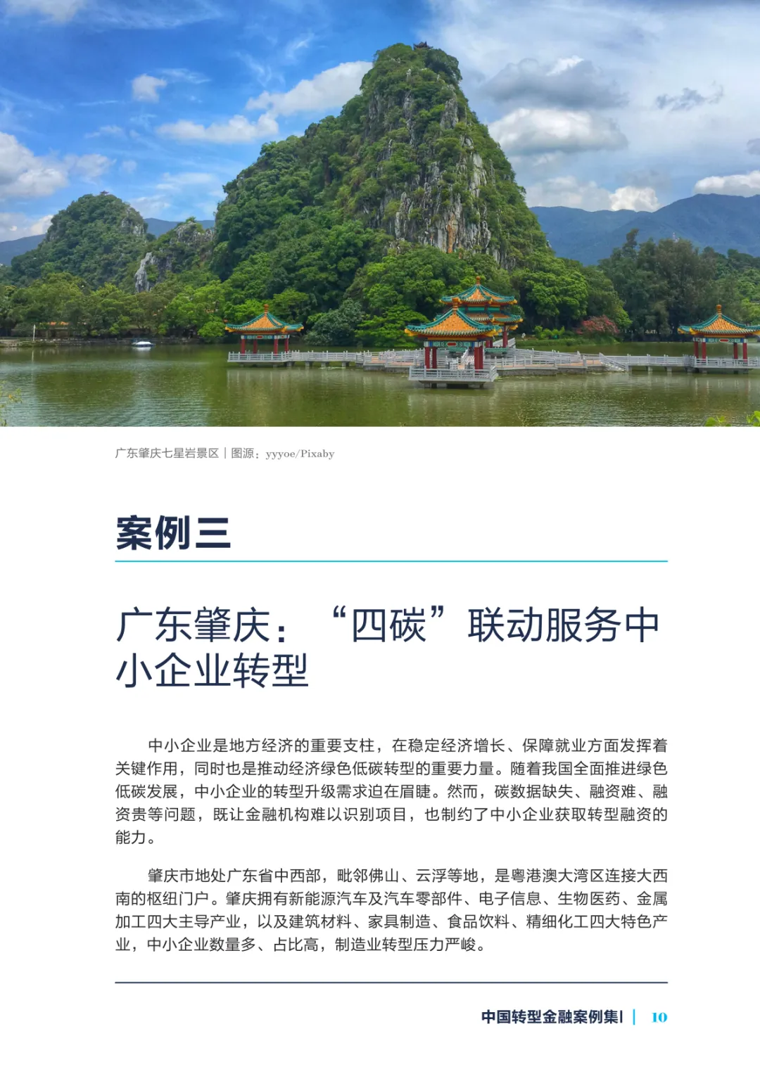 转型金融作为支持经济低碳化的重要工具,在我国双碳目标推进中发挥关键作用。地方政府立足产业特点构建政策体系。河北出台钢铁行业转型金融标准,湖州搭建全域转型金融框架,肇庆创新碳账户与碳征信联动机制,为产业转型提供制度与数据支撑。金融机构加快产品与服务创新,兴业银行推出技术流评价体系,上海农商行采用保贷联动模式,湖州银行对标国际标准制定转型规划,多元工具满足企业长期融资需求。企业主动编制科学转型方案,邯郸钢铁依托政策实现退城搬迁与绿色升级,协鑫环保打造热电行业转型样板,推动工艺改造与能效提升。案例集总结转型金融发展启示,政策协同、产业耦合、标准明晰、工具多元是核心支撑。转型金融需强化政银企联动,完善标准与信息披露,推动金融资源精准投向低碳领域,助力实体经济实现高质量绿色发展。