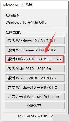 2)点击激活office。如若激活不成功,可以多点击几次激活;此为联网状态下的激活方式。