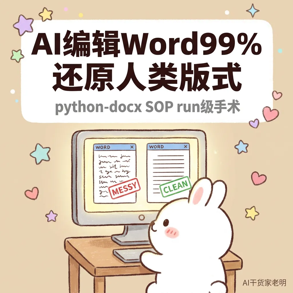 适合:经常用AI 生成/改写 Word、却被字体行距页眉页脚折磨的朋友。 工具:python-docx(或同类能操作 OOXML 的方案)。不涉及具体商业项目,示例已脱敏。