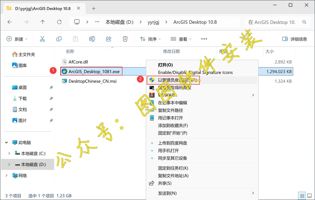 3.找到【ArcGlS_Desktop_1081.exe】安装程序,并右键点击【以管理员身份运行】