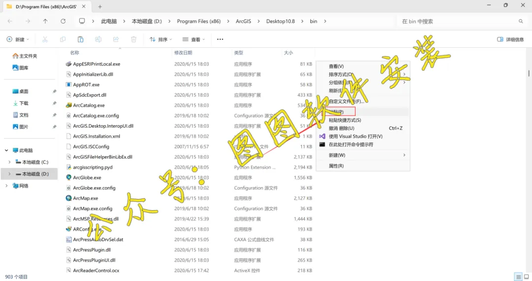 21.回右键【ArcGIS Desktop 10.8软件快捷方式】,点击【打开文件所在位置】