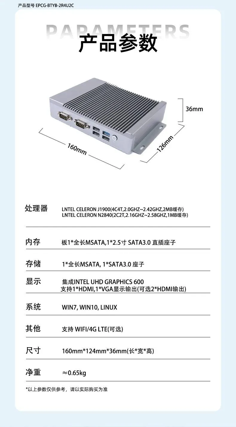 核心配置:搭载 Intel Celeron J1900 处理器,板载 4GB DDR3L 内存,1×mSATA+1×2.5 英寸 SATA 双存储,满足系统与数据分离存储需求
