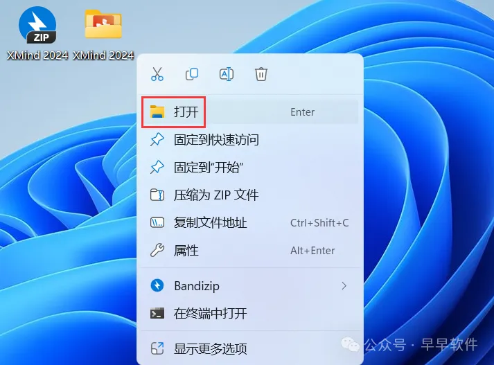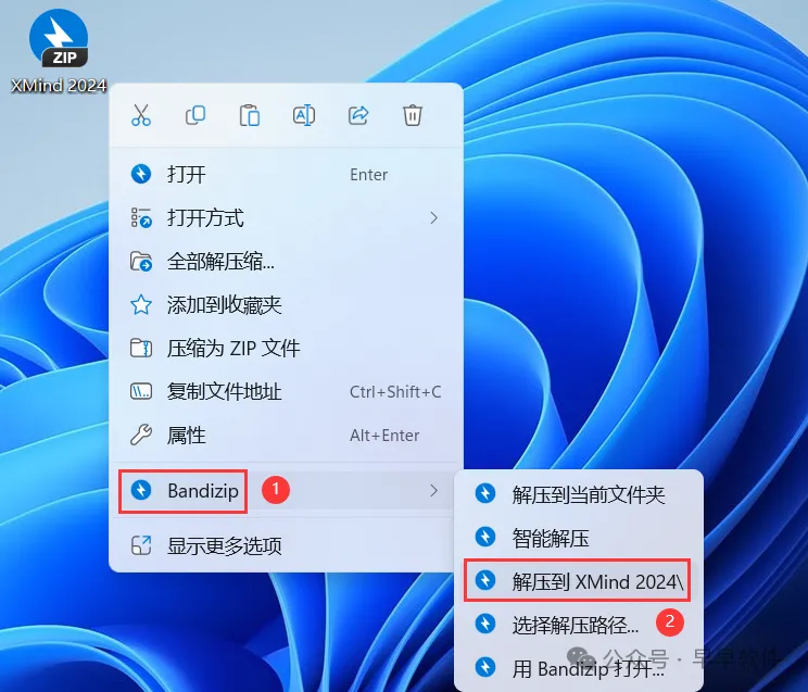 1、下载XMind 2024软件安装包到电脑上,右键选择【解压到XMind 2024\】