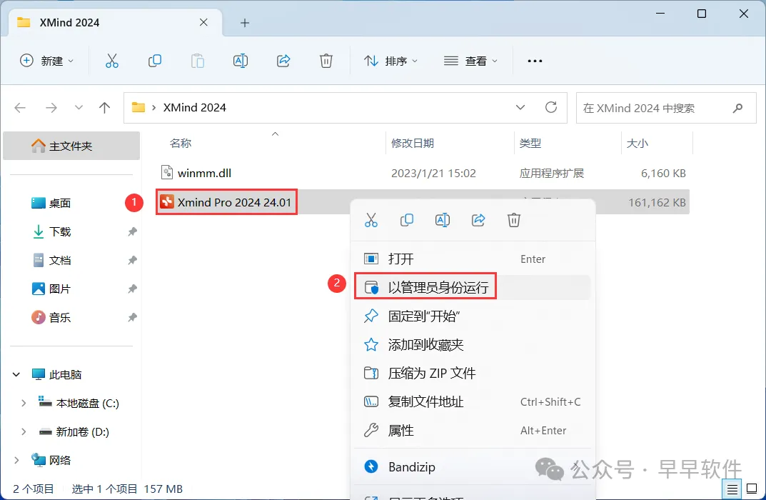 3、找到【XMind Pro 2024】应用程序,右键选择【以管理员身份运行】它