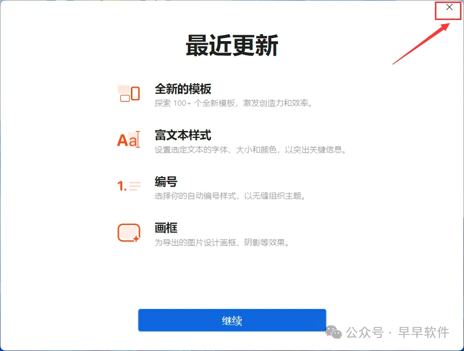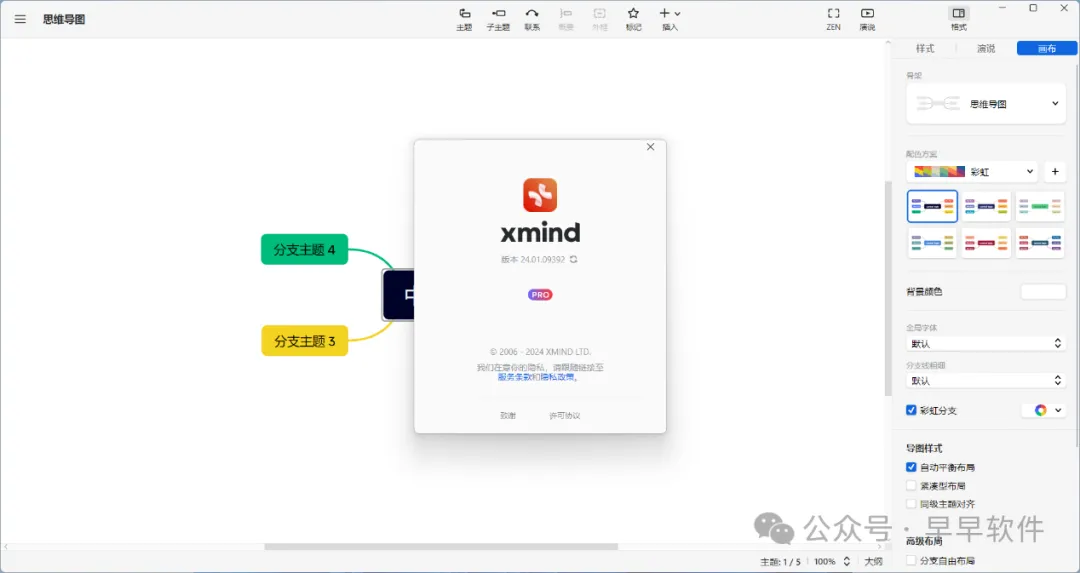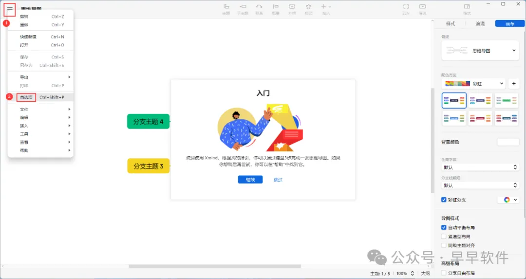5、软件安装成功,Xmind 2024会自动打开,点击右上角【关闭按钮】