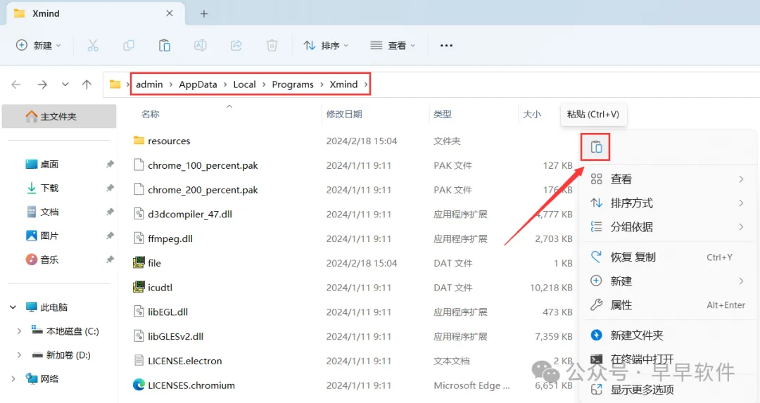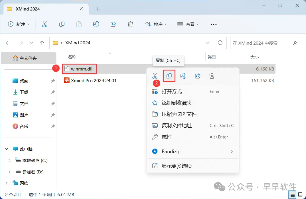 6、回到Xmind 2024文件夹,找到【winmm.dll】文件,再右键点击【复制按钮】