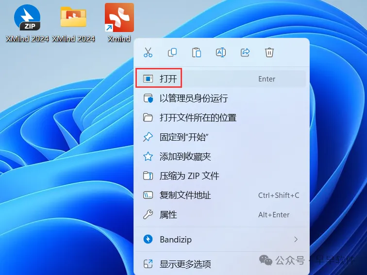 9、回到桌面,右键桌面上的【Xmind软件图标】,点击【打开】