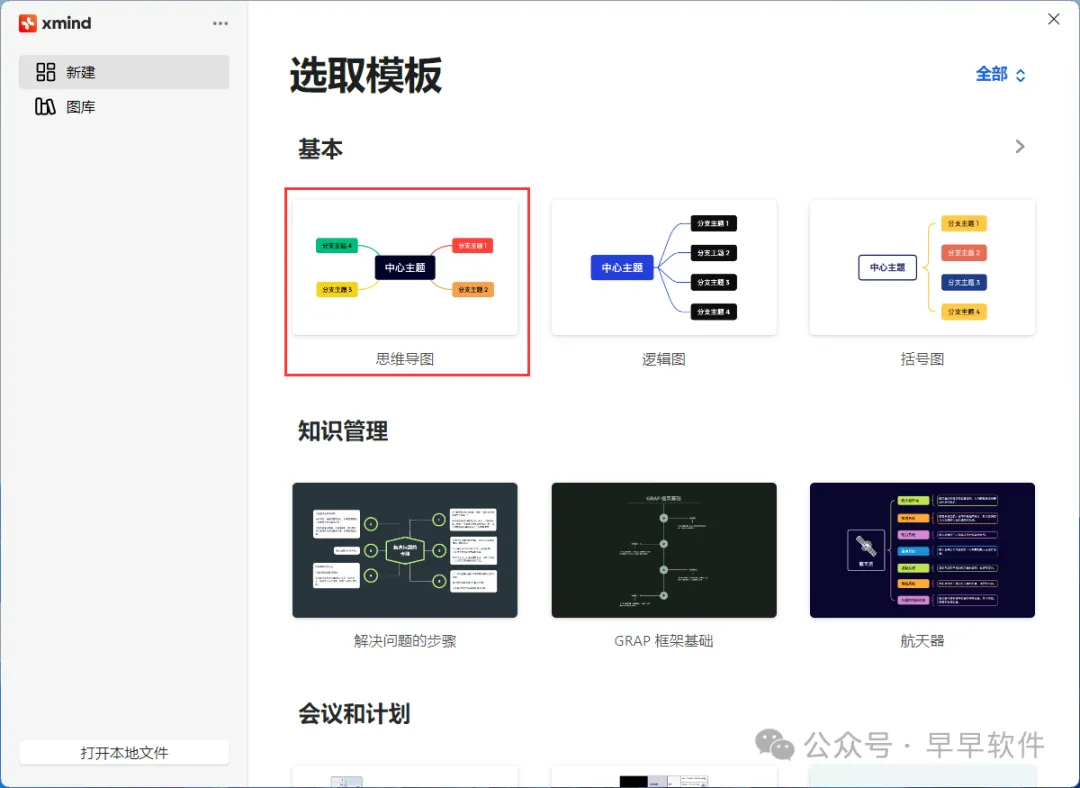 13、进入Xmind 2024的运行界面,选择一个模板打开