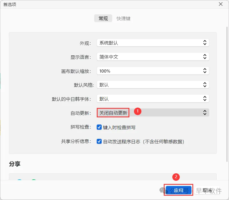 15、自动更新选择【关闭自动更新】,再点击【应用】