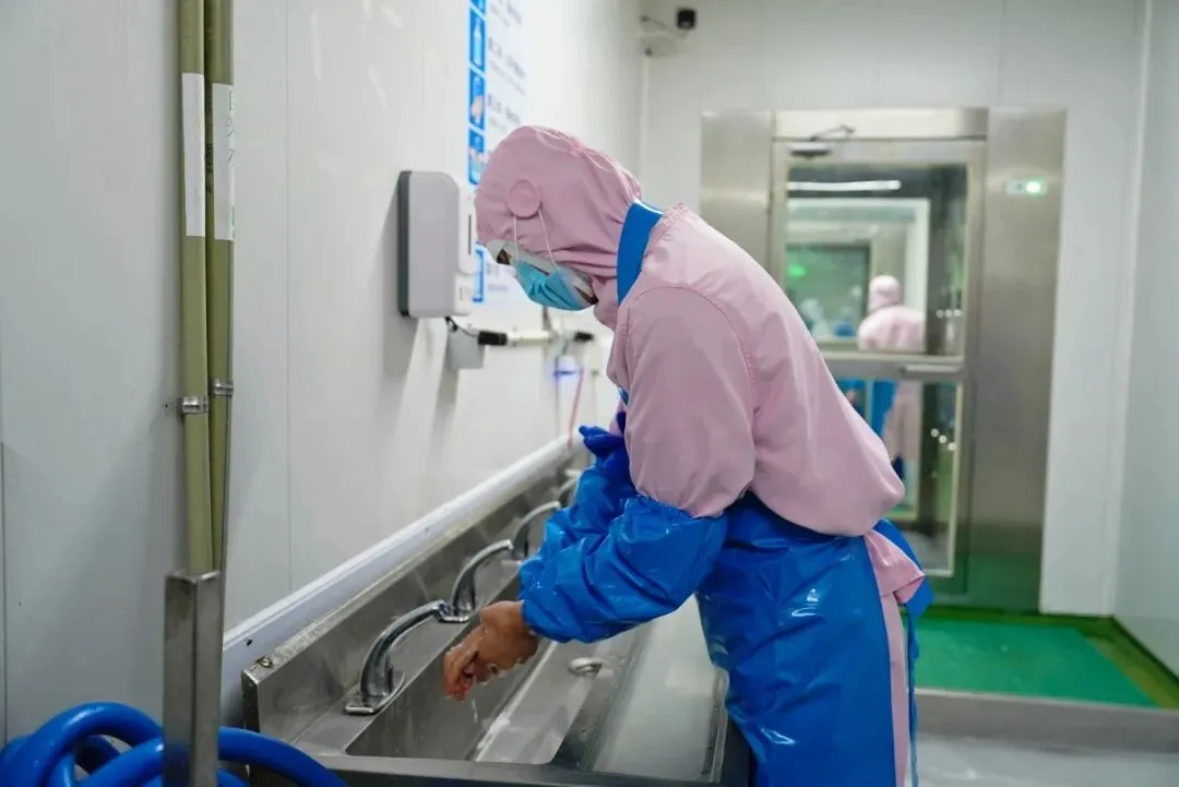 一大早,记者走进德阳新希望六和食品有限公司生产车间看到,洁净明亮的环境里,身着统一工作服、佩戴严实口罩与工作帽的工人,正有条不紊开展切割、加工、封装等作业。墙面、天花板、设备旁布满高清智能监控,实现生产全过程无死角覆盖。