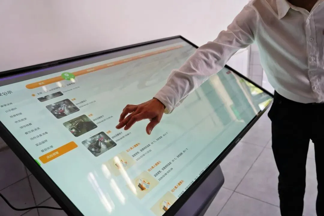 “这块公示屏能展示食品安全公示、明厨亮灶实时画面,还能通过AI大数据进行风险预警。”中江中学校食堂经理李松指着屏幕介绍,系统可实时监测员工穿戴规范度,后台能查询餐厨处理、菜品留样等信息。管理人员手机接收提醒后,第一时间就能解决问题,让食堂管理更高效省心。