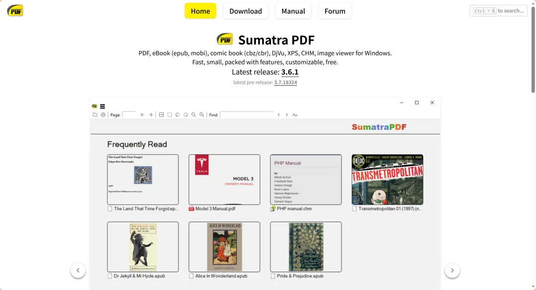 Sumatra PDF是一款由Krzysztof Kowalczyk开发、专为Windows平台设计的免费、开源、轻量级文档阅读器。它以极致的启动速度、简洁无干扰的界面和极低的资源占用为核心特色,不仅是PDF阅读器,更支持ePub、MOBI、DjVu、CHM、XPS及漫画格式(CBZ/CBR)等多种文件,是高效阅读的理想工具。