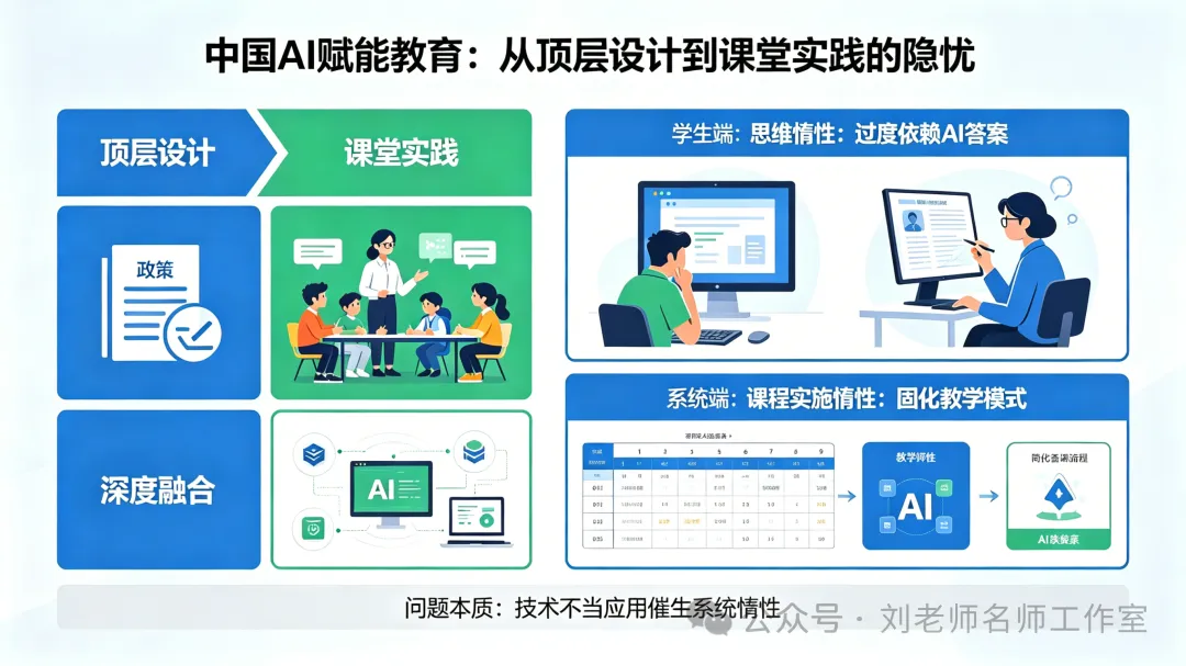我国AI赋能教育的进程,已从顶层设计走向课堂实践,从辅助工具迈向深度融合。然而,在教学形态百花齐放的同时,一些深层隐忧也随之浮现。