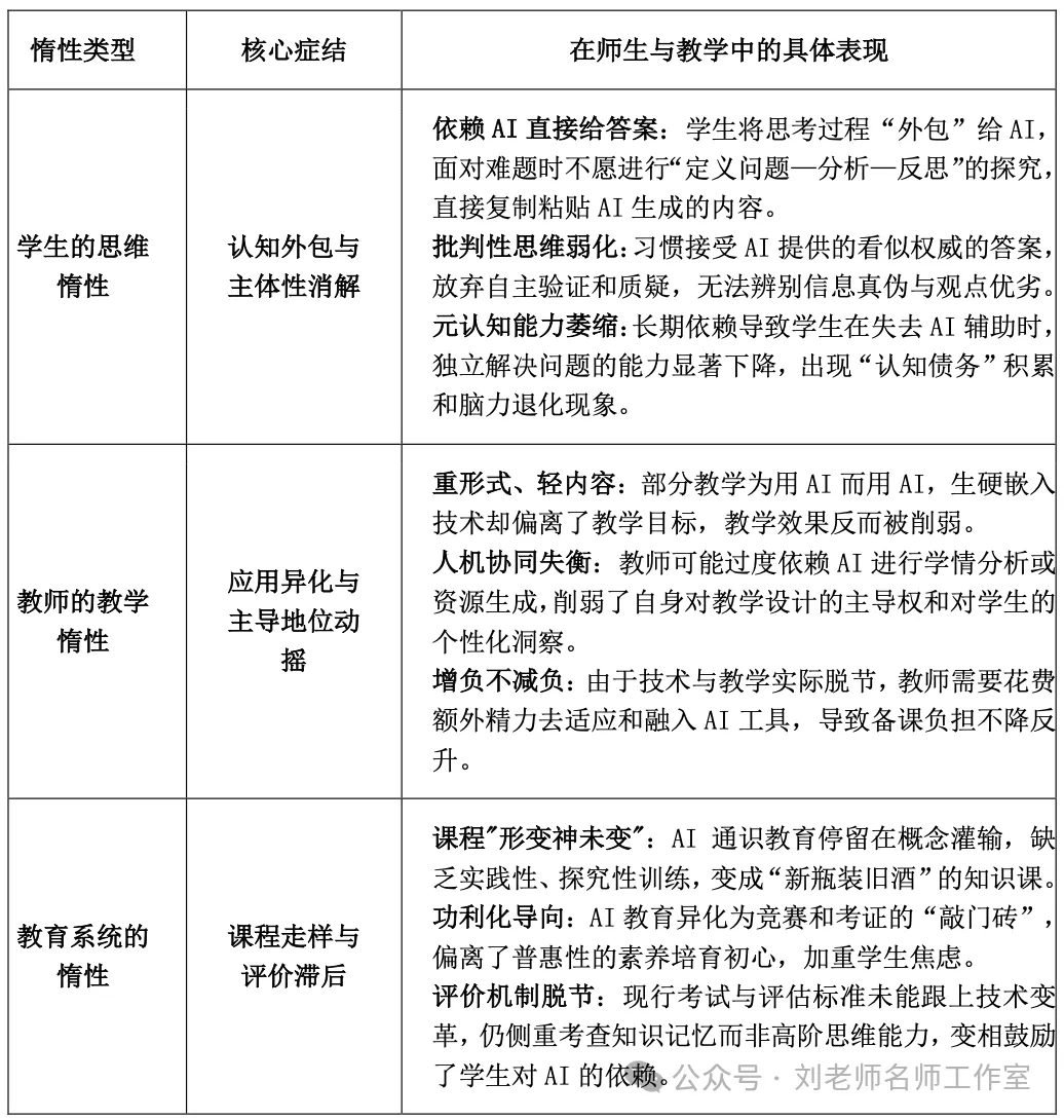 当前问题的本质,并非AI技术本身的缺陷,而在于其不当应用正在催生教育系统中不同主体的“惰性”——这既包括学生端的思维惰性,也涉及教师端的教学惰性,更延伸至系统层面的课程实施惰性。