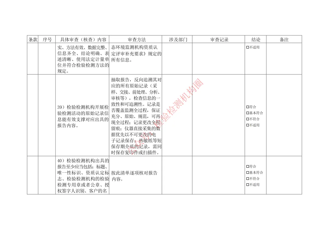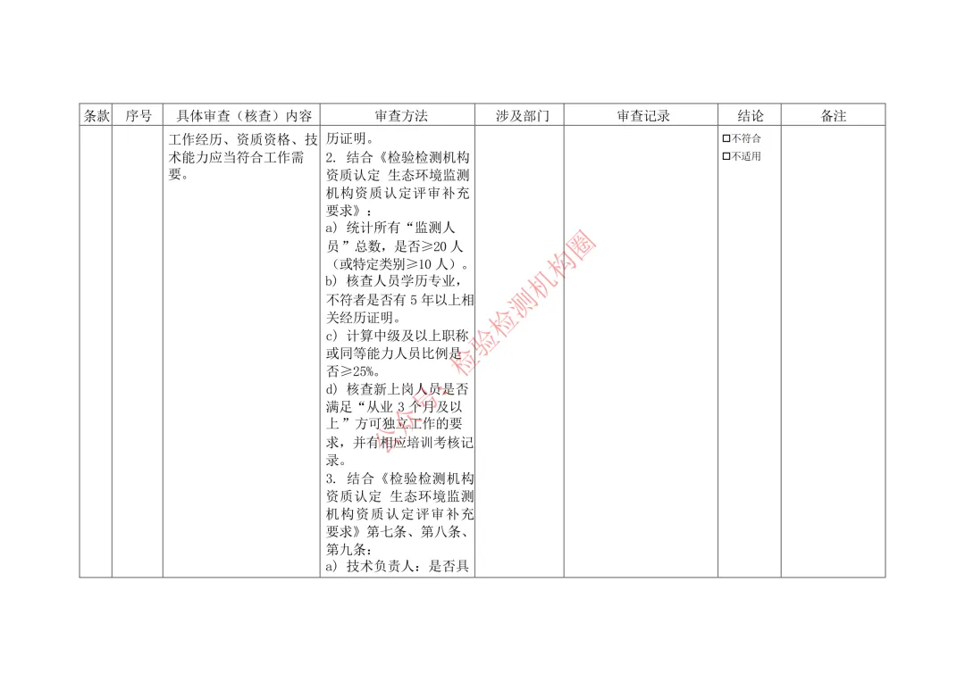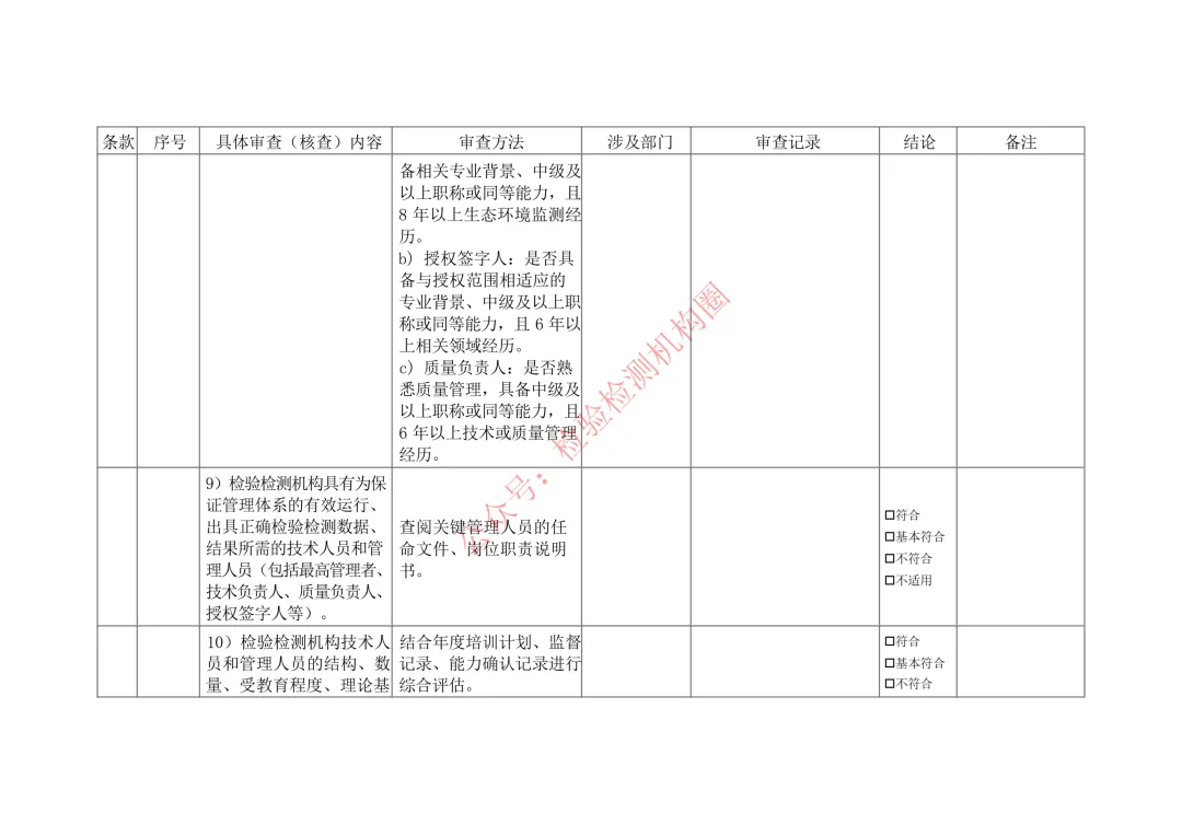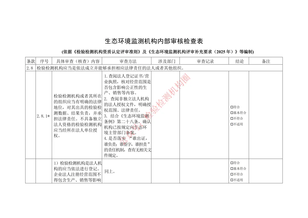 为帮大家高效开展内审、精准排查风险、一站式完成迎检准备,我们依据 《检验检测机构资质认定评审准则》+2025 版生态环境监测专项要求 ,梳理了这份内部审核检查表,条款清晰、方法明确、判定直观,内审员拿来就能用、逐项就能查。