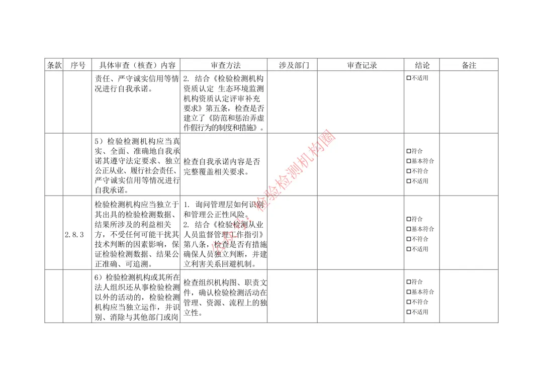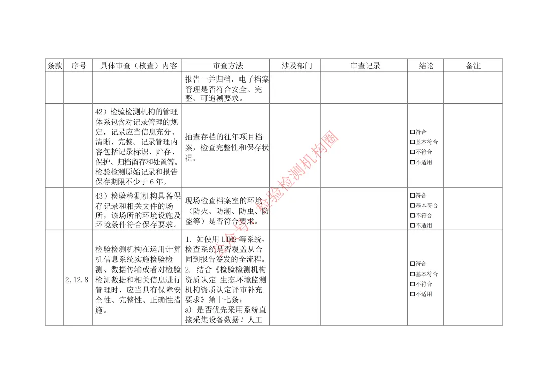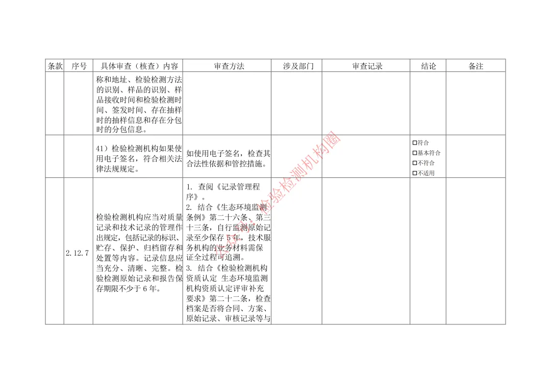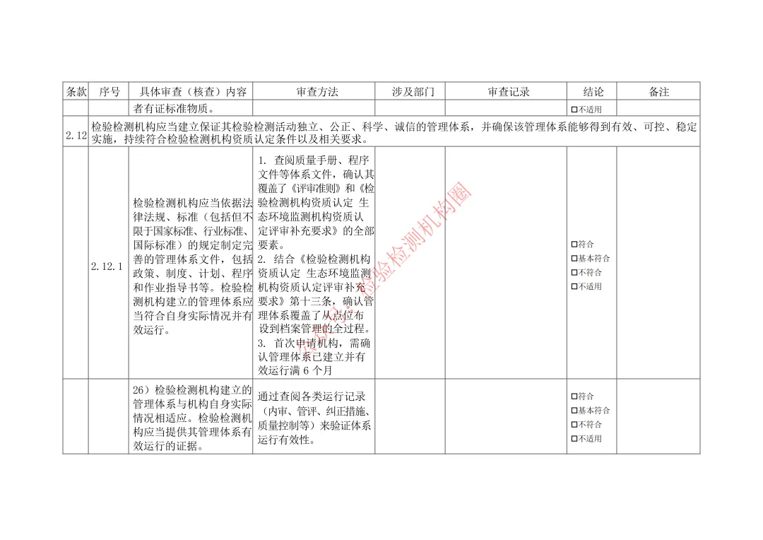 为帮大家高效开展内审、精准排查风险、一站式完成迎检准备,我们依据 《检验检测机构资质认定评审准则》+2025 版生态环境监测专项要求 ,梳理了这份内部审核检查表,条款清晰、方法明确、判定直观,内审员拿来就能用、逐项就能查。