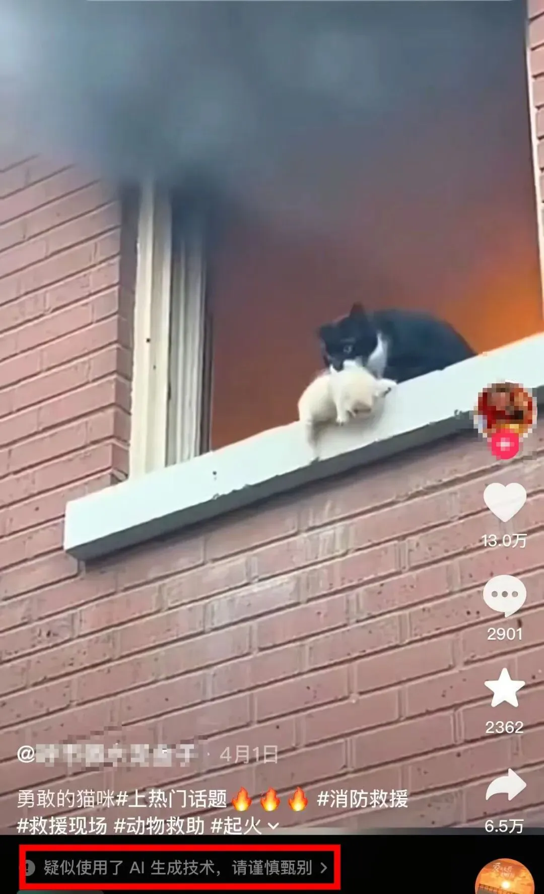 记者注意到,4月1日有网友发布过这条视频,视频下方提示“疑似使用了AI生成技术,请谨慎甄别”。