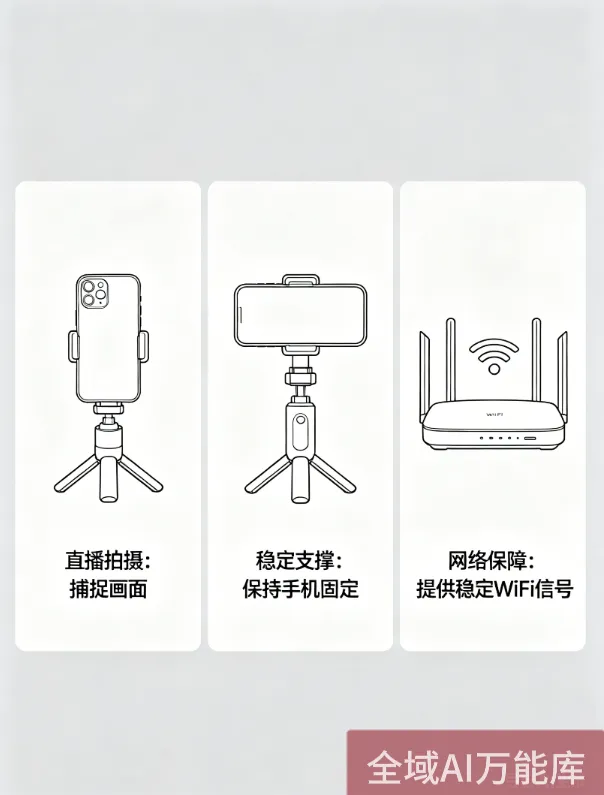 可选补充:补光灯(20-30元,用于优化画面亮度,尤其适合光线差的环境)、麦克风(可选,提升声音清晰度,AI直播可不用,工具自带配音)。