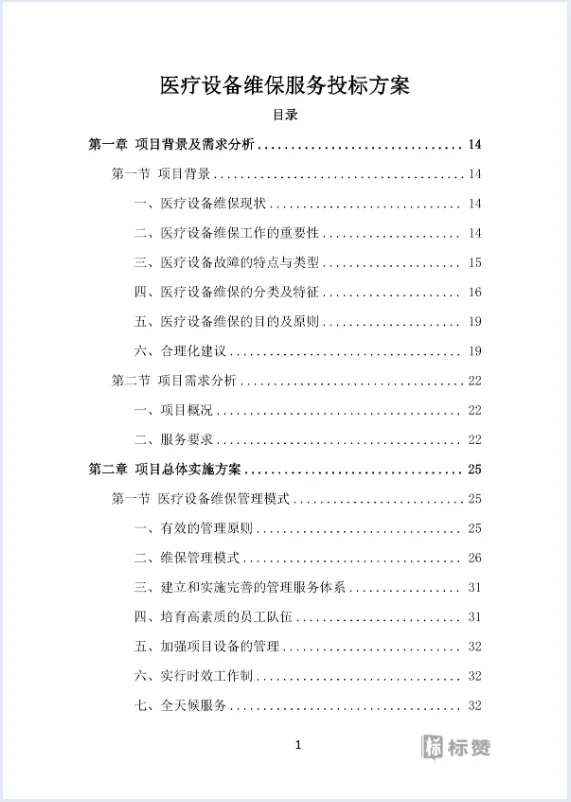 【标书模板】医疗设备维保服务投标方案点击蓝字,关注我们最新方案模版 并肩作战 共创辉煌 医疗设备维保服务投标方案(360页) 标书模板(word)下载 点击图片 直接下载精选目录精选内容浏览247页 标书模板(word)下精选内容浏览335页 标书模板(word)下载往期推荐【标书模板】物流运输组织实施方案(适用于烟草、煤炭、化肥、橡胶等运输项目)【标书模板】配电工程投标方案【标书模板】施工图审查服务投标方案【标书模板】食堂承包投标方案