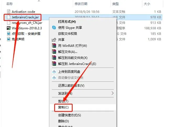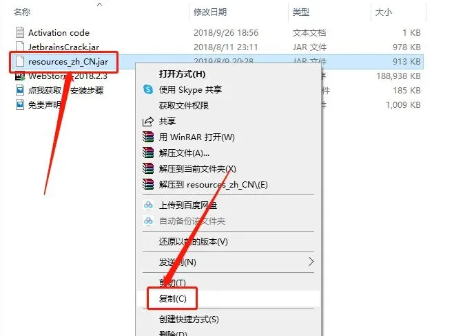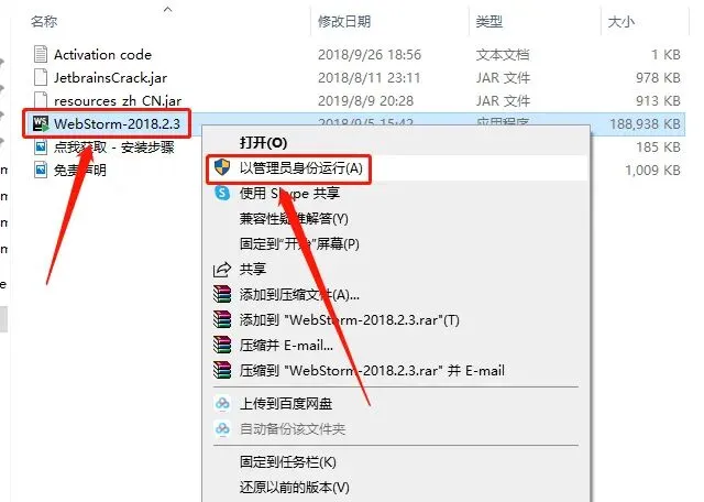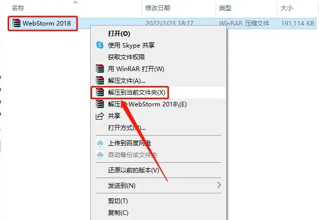 1、下载WebStorm 2018软件安装包到电脑上,右键选择【解压到当前文件夹】。