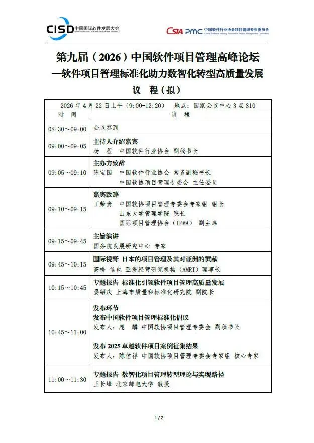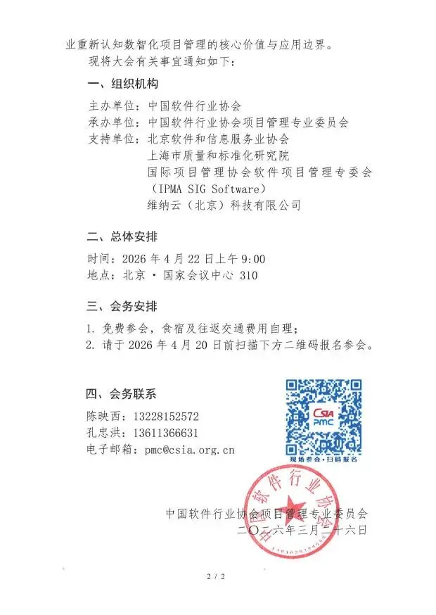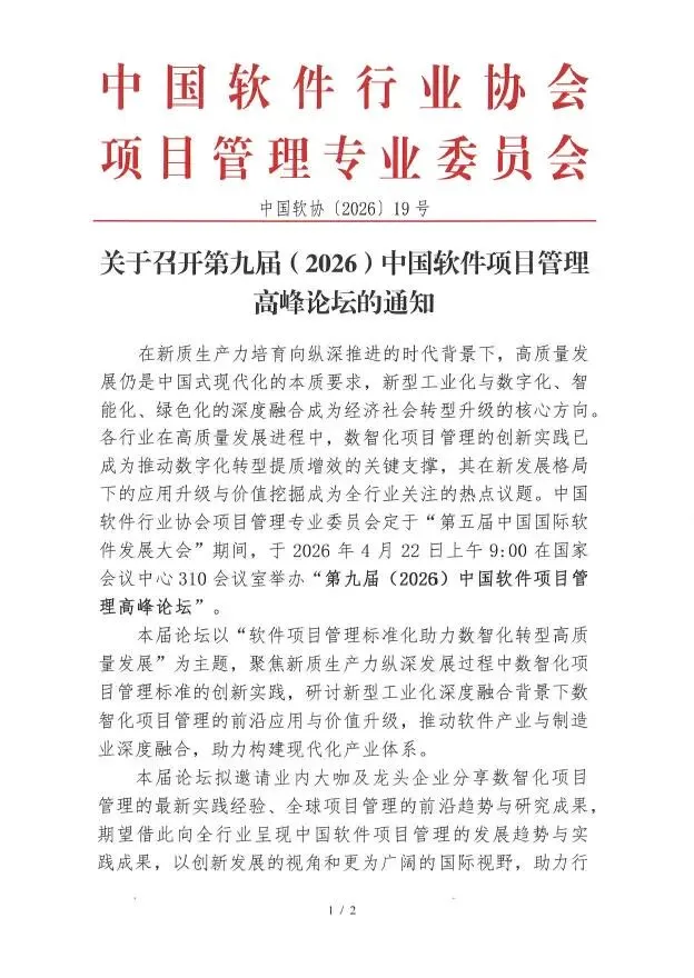『动态』关于召开第九届(2026)中国软件项目管理高峰论坛的通知