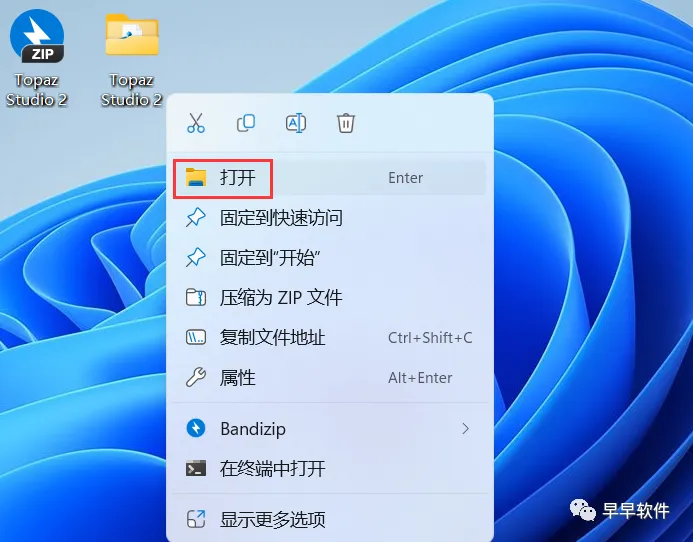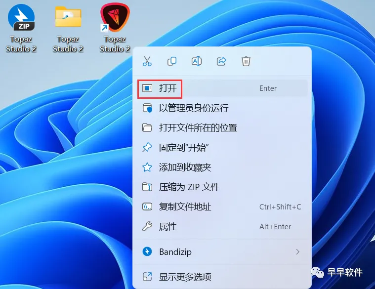 16、回到桌面,右键桌面上的【Topaz Studio 2软件图标】,点击【打开】