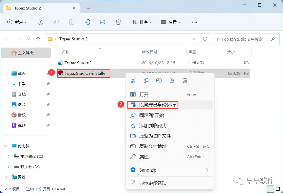 3、找到【TopazStudio2-installer】应用程序,右键选择【以管理员身份运行】它