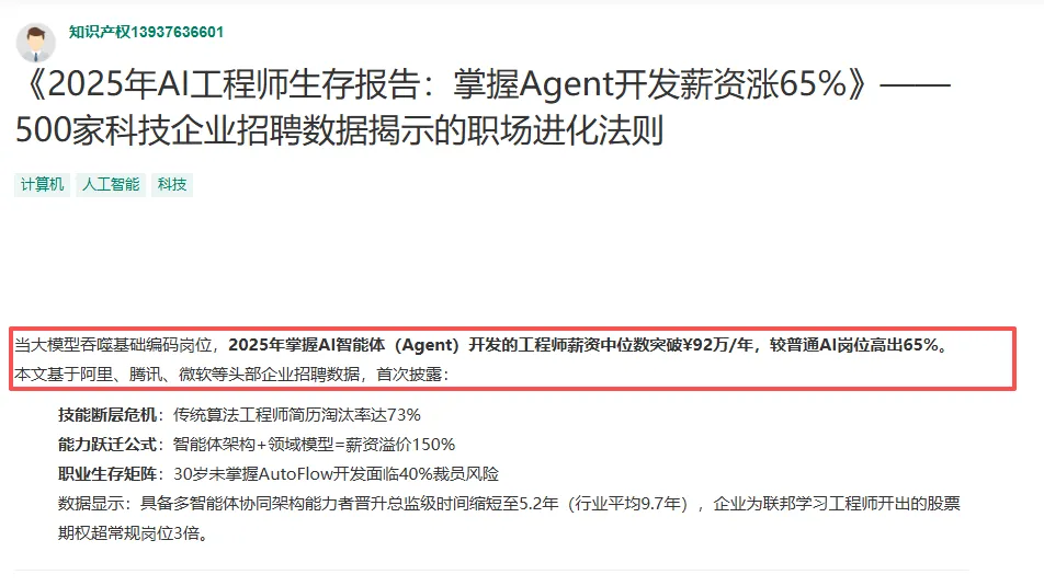 需求来源:所有试图将AI模型落地、实现稳定交付的企业。掌握LLM、RAG与AI Agents的人才薪资溢价最高达56%。