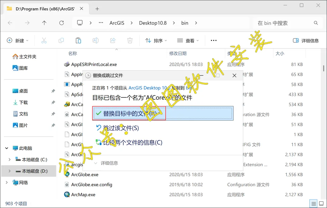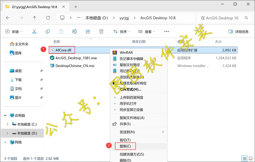 19.返回到ArcGIS Desktop 10.8文件夹,找到【AfCore.dll】文件,右键点击【复制】