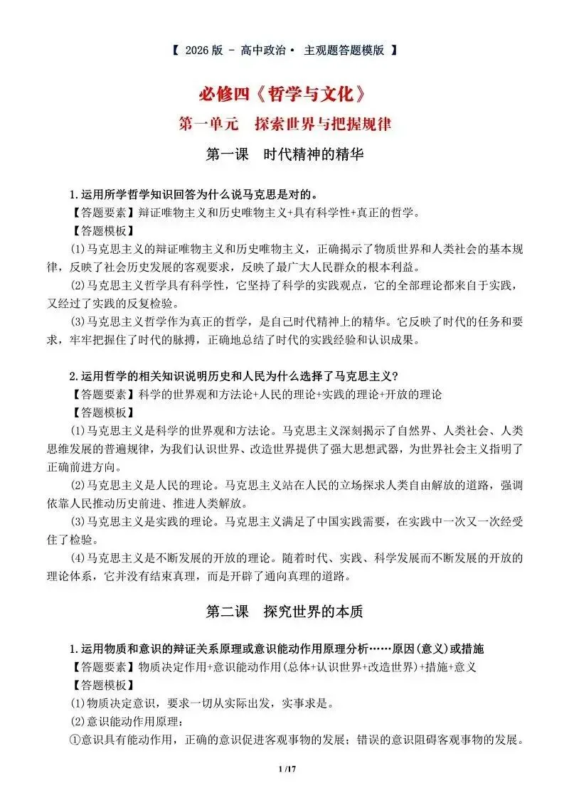高考政治主观题占分高、拉分大,背会模板 = 稳拿分!