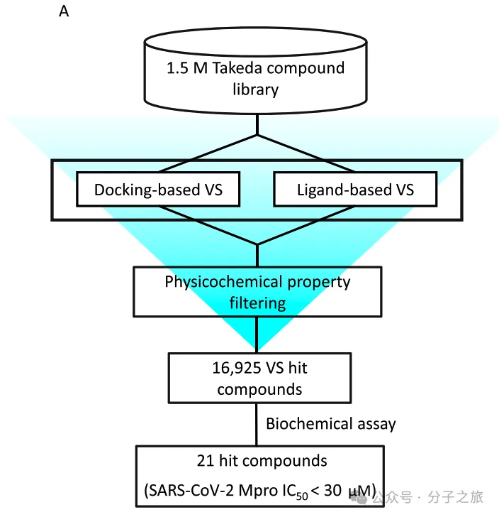 研究团队采用计算机辅助药物设计方法,对150万化合物库进行虚拟筛选。通过分子对接和相似性搜索两种策略,最终筛选出21个苗头化合物,其中化合物3因其新颖的非共价抑制机制被选为重点研究对象。