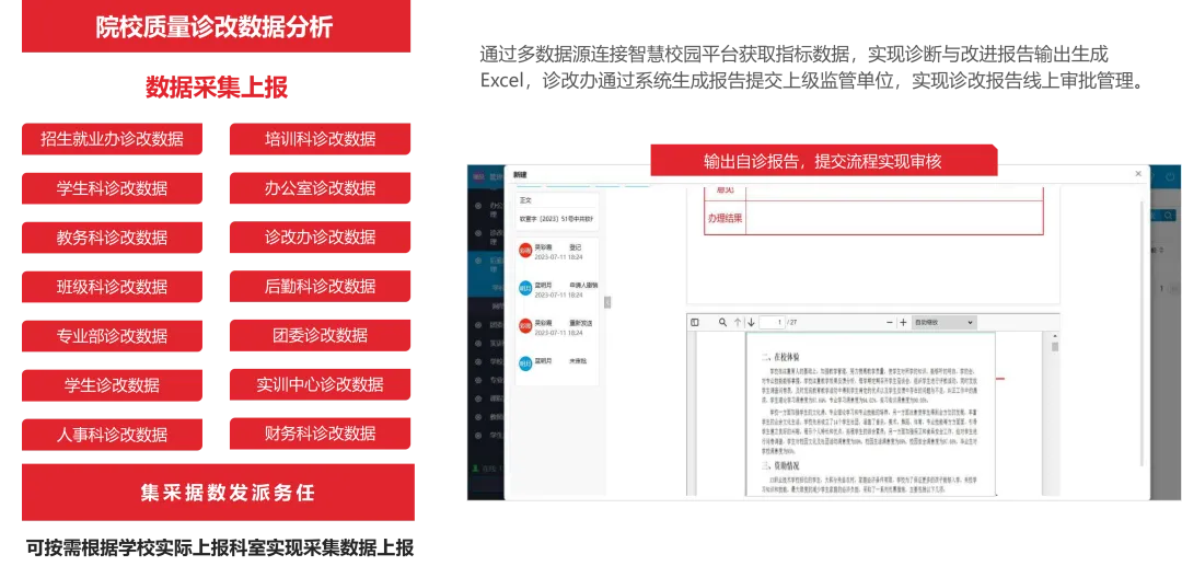 诊改工作繁重:教学质量诊断与改进需人工采集海量数据,报告生成周期长、误差大