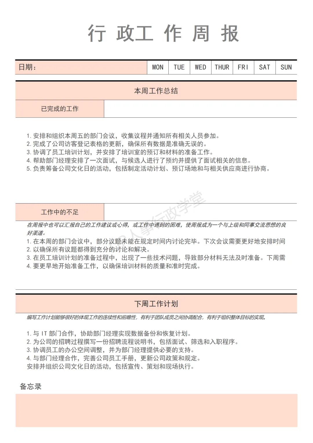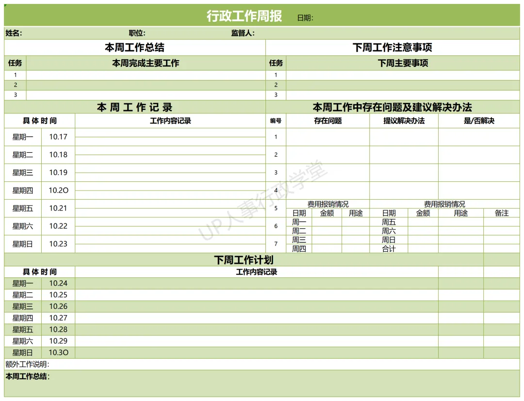 获取方式见文末。文件夹位置:人事行政表单—040 行政人事周报