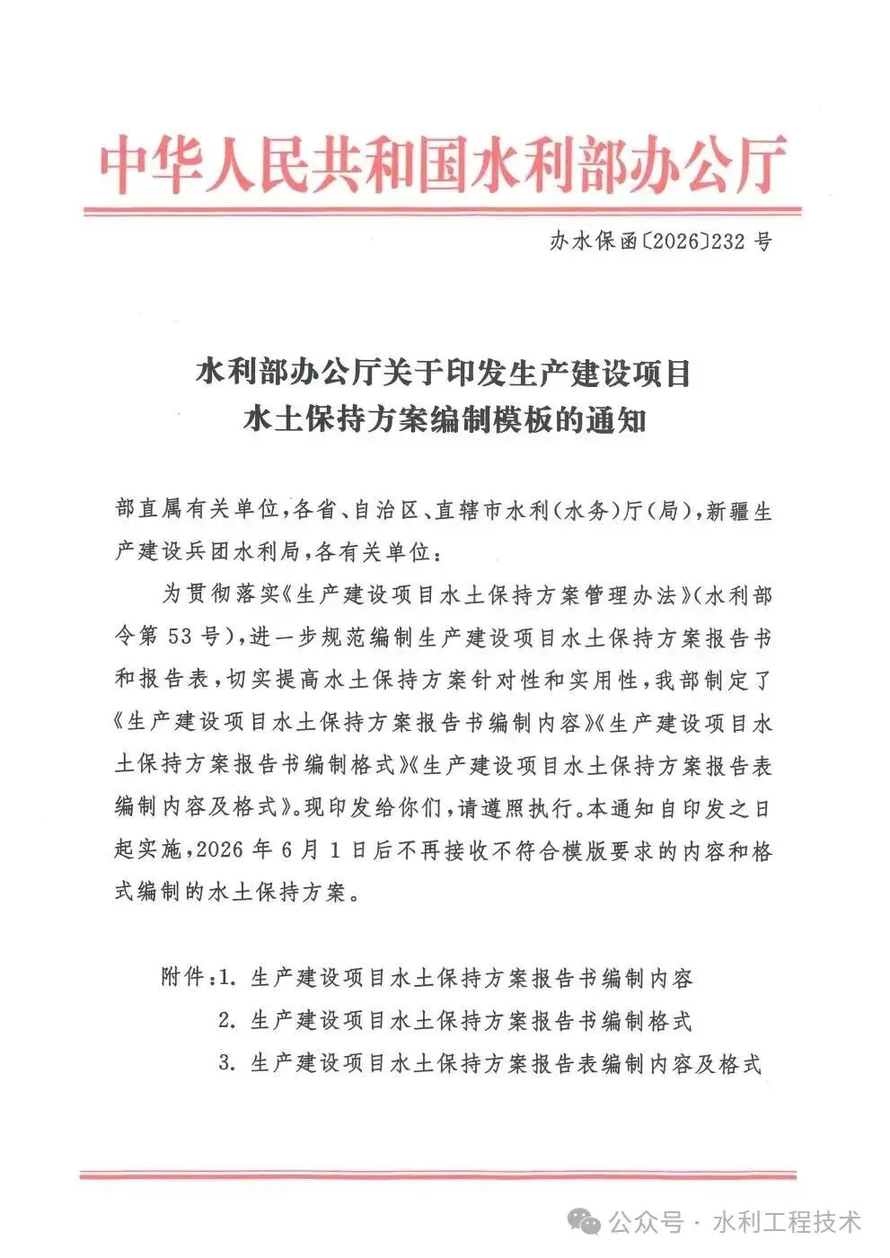 新版《生产建设项目水土保持方案编制模板》办水保函〔2026〕232号