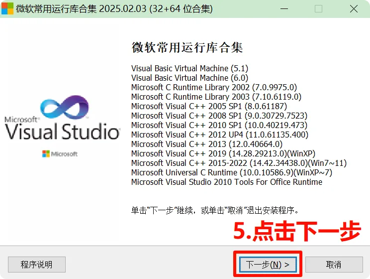 6. 一次安装,解决所有问题:不用逐个下载2005-2022各个版本的VC++,不用单独找.NET、DirectX,合集一键整合,节省时间,避免遗漏。