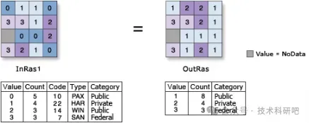 重分类:多种可对输入像元值进行重分类或将输入像元值更改为替代值的方法