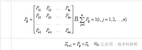 式中:St、St+1为t、t+1时期土地利用,Pij为转移概率矩阵,n为土地利用类型。