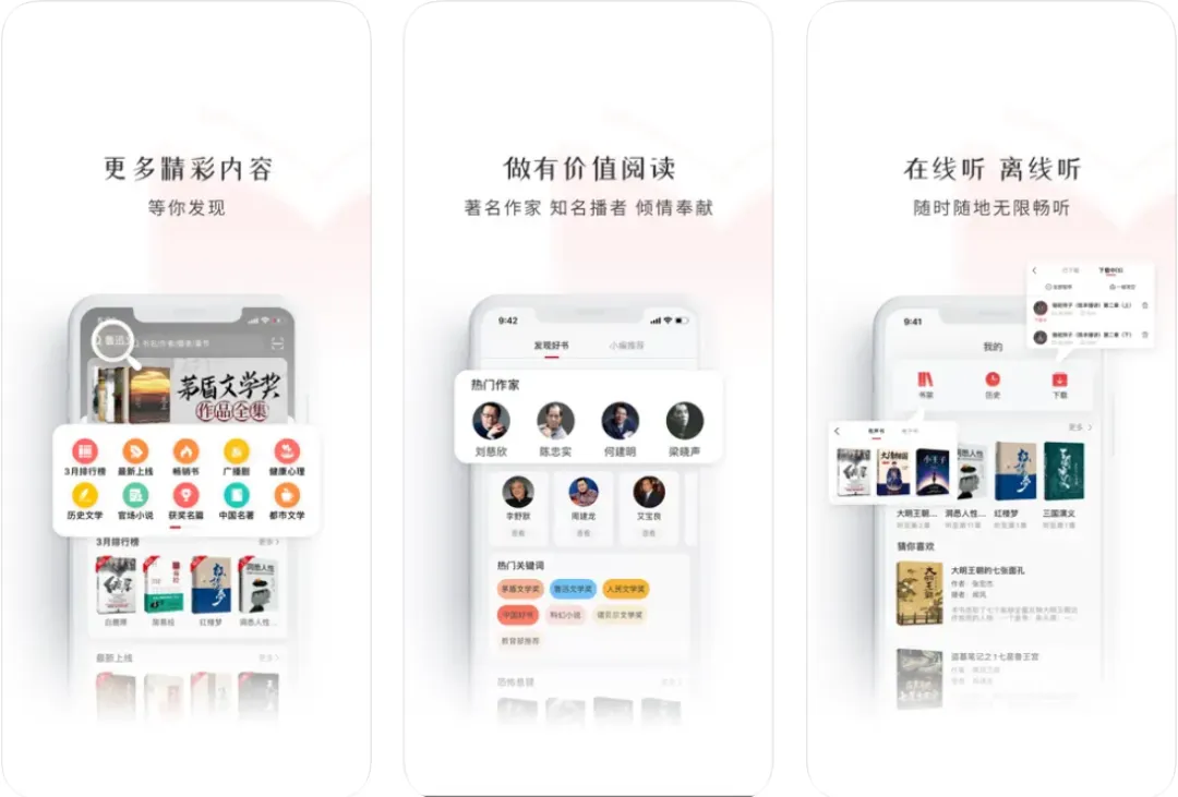 一款集合了众多经典书籍、著作的听书App,它里边的内容大多数都是出版物的语音演说版,包括中外名君、吉典文学历史文学等偏传统文学的内容。